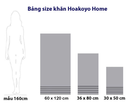 Bảng size khăn bông của Hoakoyo bao gồm kích thước, và công dụng phù hợp.